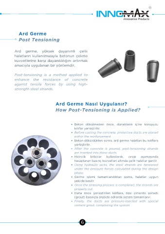Beton döküldükten sonra, ard germe halatları bu kılıflara